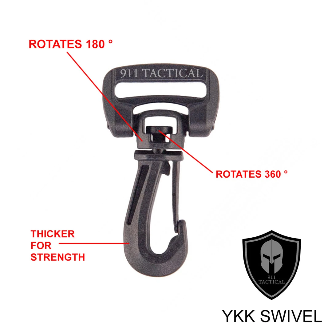 Swivel: Weโve added plastic YKK clips to attach the suspenders to the belt keepers. YKK is best known for their high-quality zippers. When we found out they made snap-hooks, we knew we had to have them on our suspenders. The hook is thicker, stronger and much more durable. On past generations, the snap-hook only rotated. They relied on the loop for it to swivel. The YKK SnapHooks not only rotate but have their own swivels and donโt rely on the loop the suspender material is threaded through. This SnapHook gives the 4th Gen suspenders more movement, make them more comfortable for the user and much more durable.