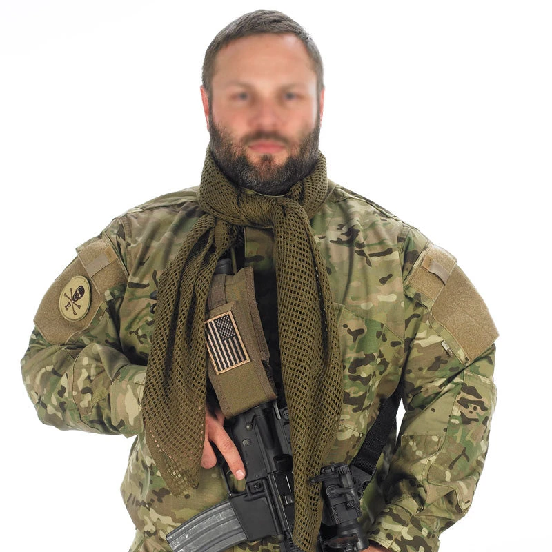 Camcon® Face Veils are primarily used to retain heat in the cold and absorbs sweat in hot conditions when worn around the neck. You can use the Face Veil for other uses such as weapon and equipment concealment as well as over the face for concealment. They are made of 100% Cotton.