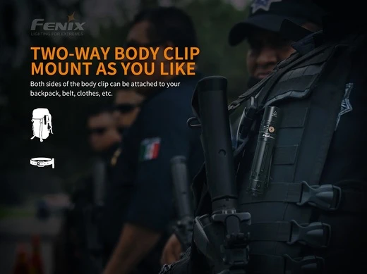 The PD36R is an ultra-compact flashlight with a powerful USB Type-C charging port. Driven by a long-lasting 21700/5000mAh rechargeable Li-ion battery, the light emits a max output of 1600 lumens and 283 meters. Dual switches control five output levels and strobe for easy and fast operation. Additional features include battery level indicator, smart output memory and two-position body clip, all which enhance daily usage in outdoor activities and tactical applications.