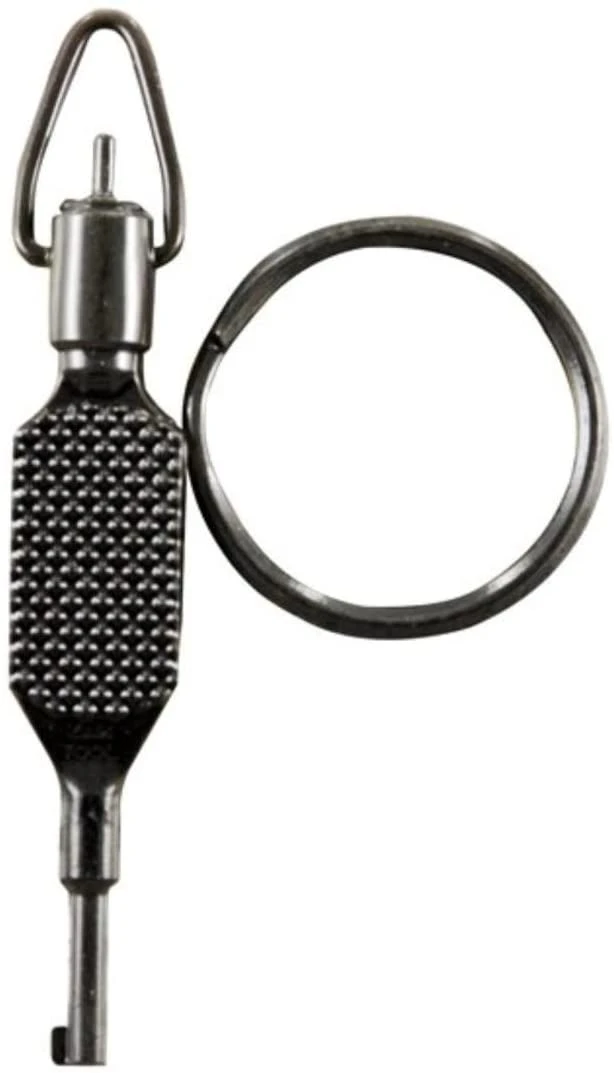 The flat knurled swivel key from Zak Tool is compatible with most standard handcuffs.